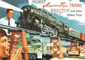 Here is the 1954 Consumer Catalog for Gilbert American Flyer Toys and Trains. This Cover Artwork was used for the Consumer Train Catalog that Gilbert American Flyer produced.